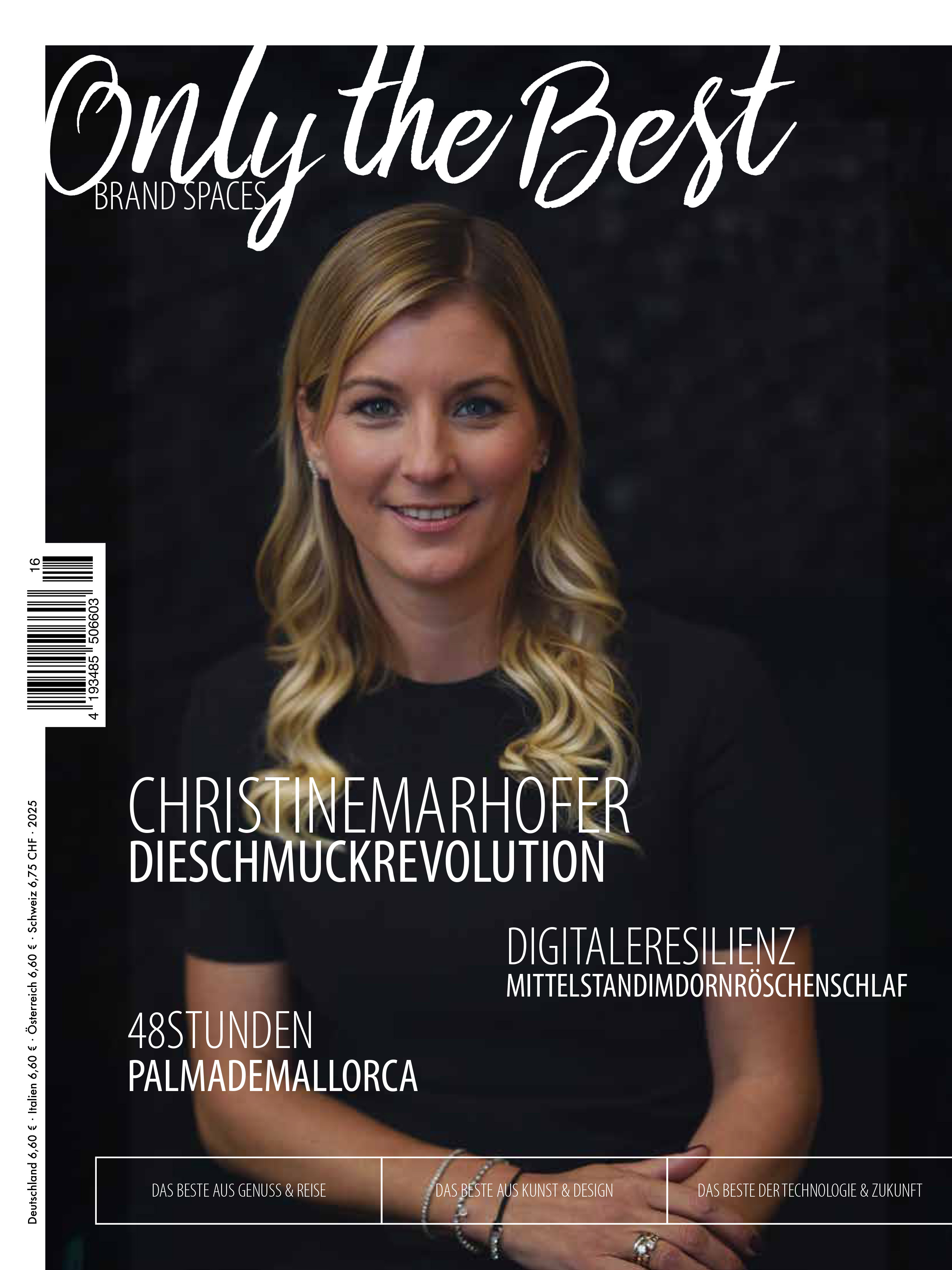 Die Only the Best Brand Spaces GmbH bringt unter dem gleichen Namen das Magazin Only the Best Brand Spaces auf den Markt. Only the Best sucht und findet besondere Persönlichkeitsprofile, gibt überraschende Perspektiven und führt den Leser inspirierend durch das Beste aus den Themen Genuss, Kunst und Kultur sowie Mobilität und Technik. Only the Best ist für alle, die sich und etwas bewegen wollen. Mit dem Magazin erreichen Anzeigenkund:innen die besten Leser:innen mit einem Höchstmaß an Involviertheit für ihre Marke. Die persönliche Bindung an das jeweils mit Leidenschaft vorgestellte Persönlichkeitsprofil schafft Nähe und Vertrauen und gibt der jeweiligen Werbe-Botschaft den gewünschten Boost! Only the Best positioniert sich mit seiner besonderen Strahlkraft als Premiumprodukt am Markt und richtet sich an eine konsumstarke Zielgruppe mit Stil, Lebensart und Haltung. Only the Best Brand Spaces erscheint vierteljährlich in München mit 15.000 Exemplaren. Weitere Städte sind in Planung. Das Magazin erzielt durch ausgesuchte Mediapartner eine hohe Reichweite in einer exklusiven Zielgruppe. Präsent ist Only the Best z. B. bei Feinkost Käfer, Restaurant Jin in München … und liegt mit ca. 11.000 Exemplaren der Welt am Sonntag im Großraum München bei. So ist gewährleistet, dass im Leserkreis Meinungsmacher und „Multiplikatoren“ im Fokus stehen.